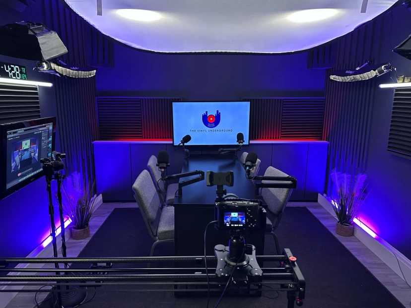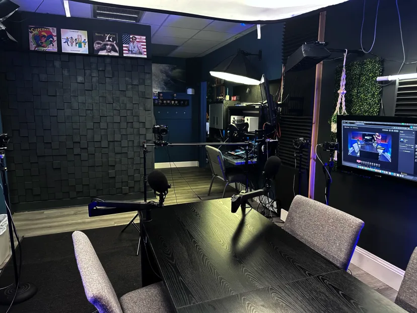 This professionally designed podcast and video studio features a full 4-camera setup, broadcast-quality audio, controlled lighting, and a comfortable layout perfect for podcasts, interviews, panels, and branded video content. Whether you’re recording a solo show, hosting multiple guests, livestreaming, or producing internal company content, the studio offers a smooth, turnkey experience.